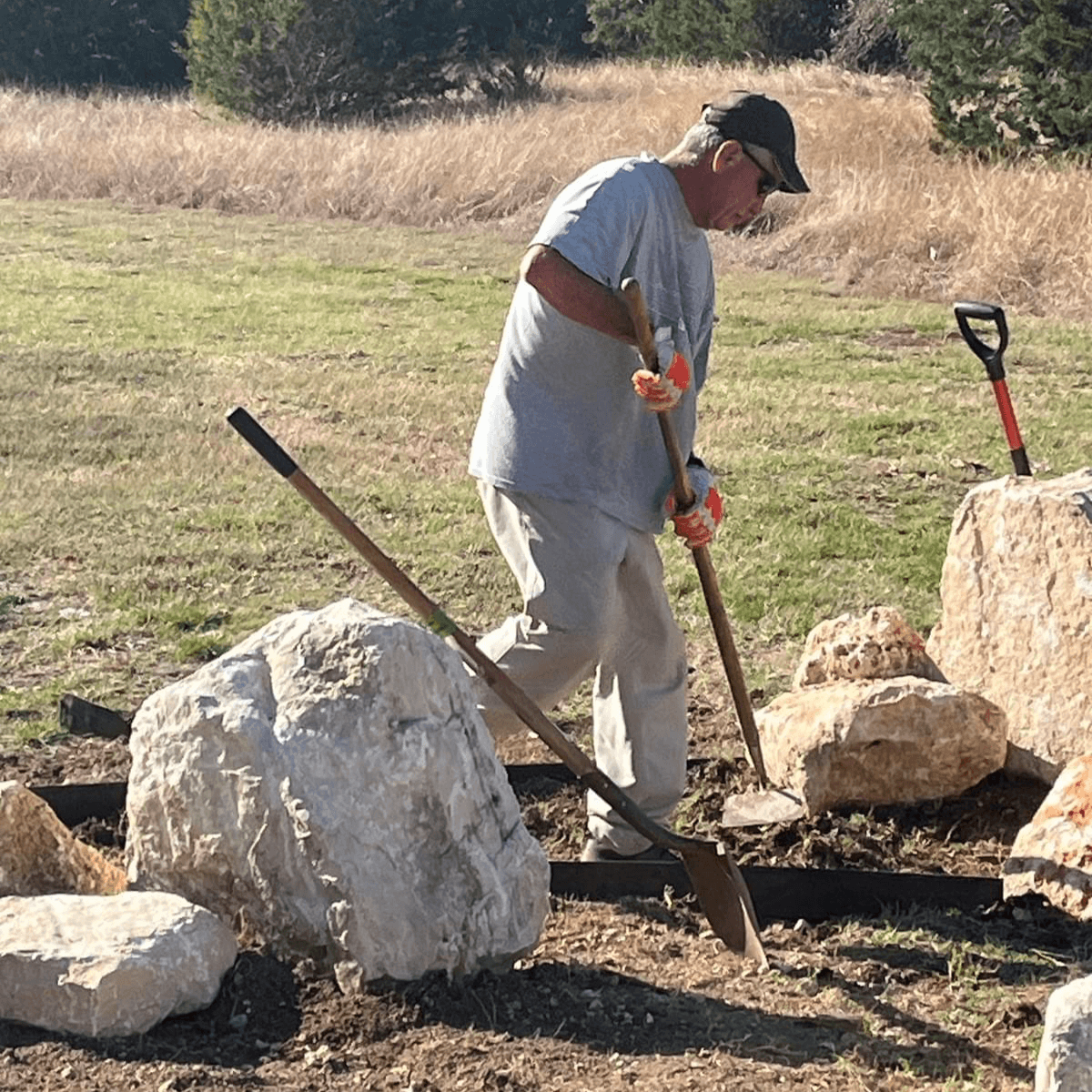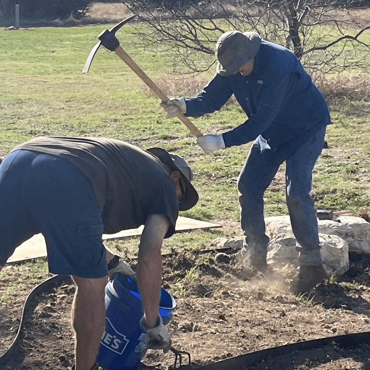 FRRCP supported the project by providing funds for Corten steel edging for the bed. River Ranch park staff provided landscaping materials (crushed granite and mulch), flagstone, decorative limestone rocks and irrigation lines. During three work sessions in February and March, volunteers prepared the landscape bed, installed edging, added rocks and planted a variety of carefully selected native plants and flowers.