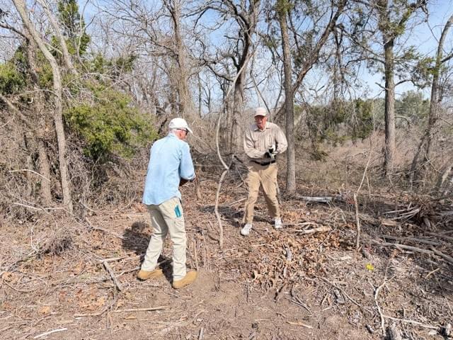 During a second work session on March 24, two volunteers spent 5.5 hours on the removal of multiple strands of heavy barbed wire surrounding a pasture northwest of the Bell Oak, between the S Trail and the A Trail. The River Ranch park crew continues to assist the team by collecting and disposing of materials.
